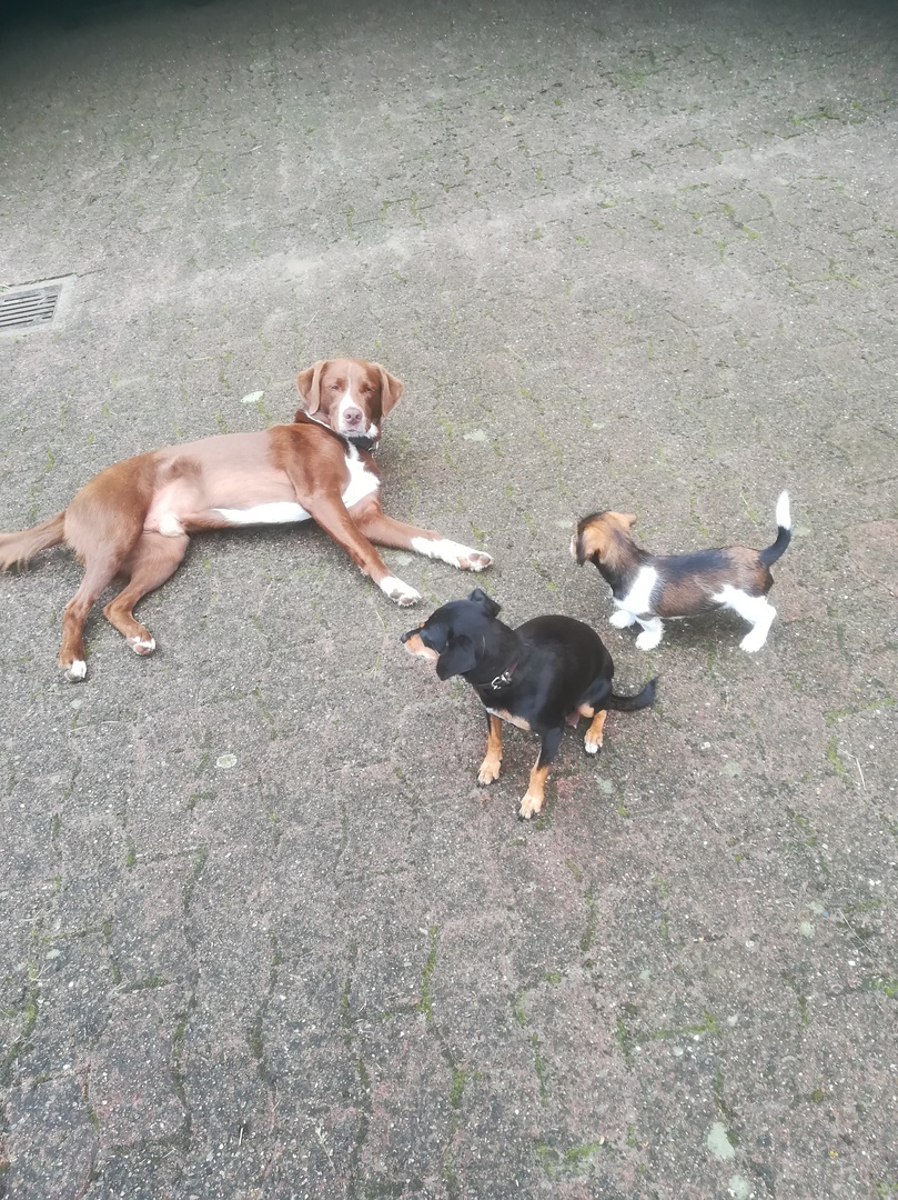 ist 2024 geboren. Er ist ein Pin-Tzu, sein Vater ist ein Shi-Tzu, seine Mutter ist Dete, unsere Zwergpinscherhündin.